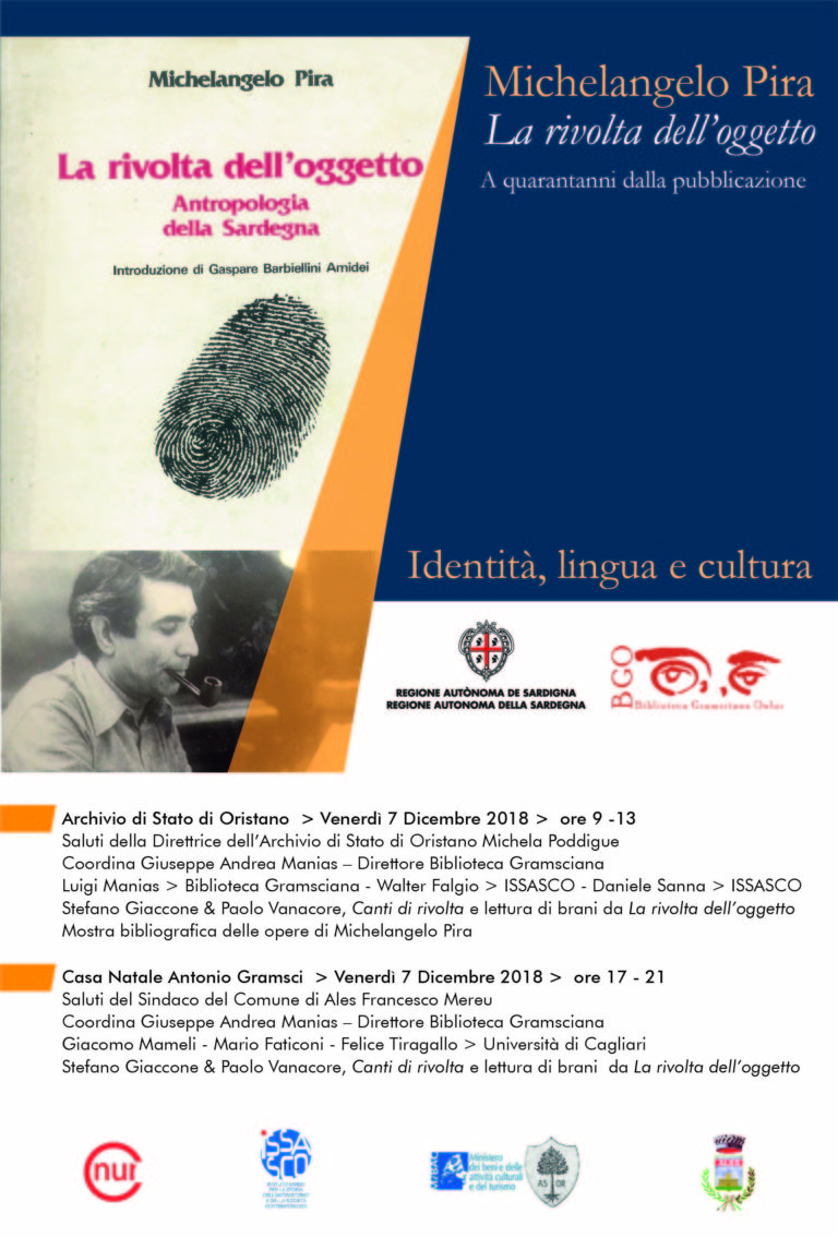 La Biblioteca Gramsciana Onlus, con il sostegno della Regione Autonoma della Sardegna, in collaborazione con l’ISSASCO e l’Archivio di Stato di Oristano e il Comune di Ales, ha organizzato per venerdì 7 dicembre un evento dedicato a Michelangelo Pira. Primo…