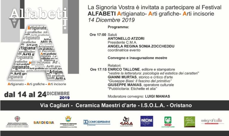 Sabato 14 dicembre alle 17 in via Cagliari, già centro Isola e attuale sede della Ceramica Maestri d’Arte, con il sostegno e partecipazione dell’Assessorato alla Cultura della RAS, della Fondazione di Sardegna, del Comune di Oristano, di Confcooperative, CMA, MCM,…