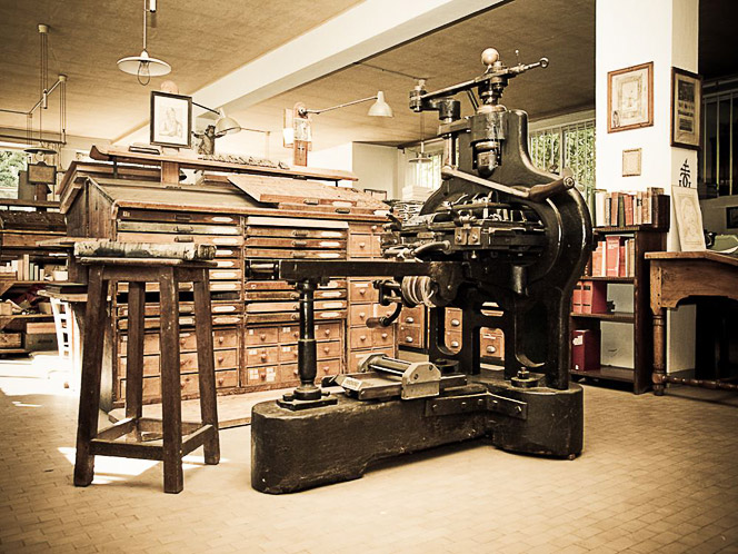 Il Manifesto dei Grand Estomac, composto dalle mani sapienti di Enrico Tallone in un bouquet di ineccepibili e variegati caratteri di fonderia (Caslon, Futura et alia), e stampato sempre a mano su un torchio verticale Stanhope da veliero, che troneggia all’entrata…